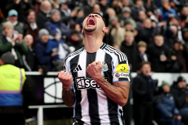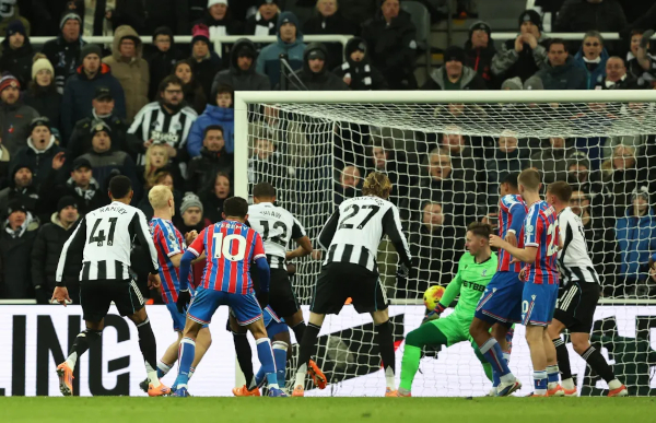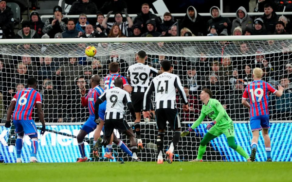 rising to head home at the Gallowgate End after Lewis Miley diverted a Harvey Barnes
