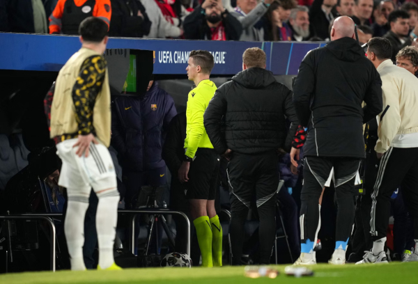 prolonged lobbying saw the referee sent to the pitchside monitor and give