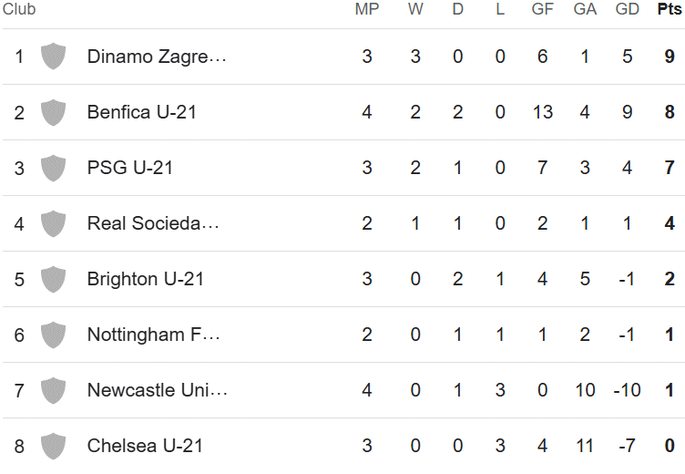 Reserve Stats 2025-26 U21 Cup Group Tables |